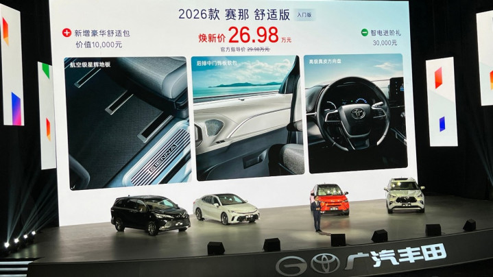 比如,广汽丰田的攻势就很猛,它针对旗下的赛那、汉兰达、凯美瑞、锋兰达进行了调整。表面上看,是全部升级了入门版的配置,车机都换装了更大尺寸的屏幕和8155芯片,同时兼容苹果、华为手机的互联系统。